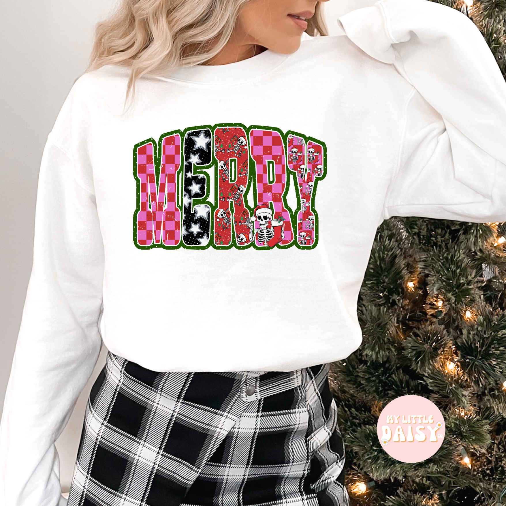 Skeleton checkered MERRY Christmas shirt/sweatshirt (Copy)